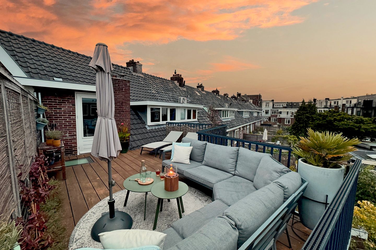 En dat dakterras… Met ± 21 m² tot je beschikking, hoog gelegen en daardoor veel privacy, mooi aangelegd én een ligging op het zuiden (met een westelijke oriëntatie). Zie je het al voor je? Heerlijk genieten tijdens mooie zomerdagen en -avonden op je eigen terras… Kom het dakterras ervaren!