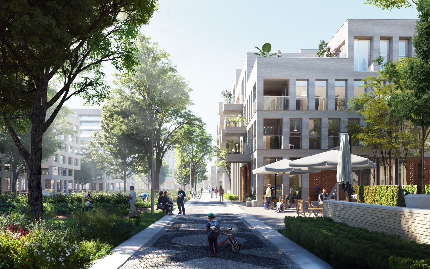 - Alle stadswoningen hebben een groen sedumdak en de appartementengebouwen een klimaatadaptief wit dak om in de zomer te zorgen voor een aangename temperatuur.
