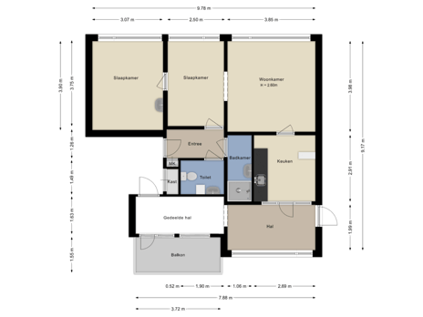 - 3 kamers (1 slaapkamer)