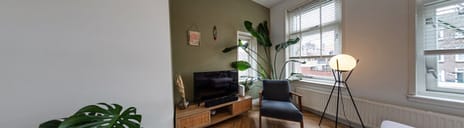 De woning ligt in een vrijstaand pand met drie woningen: een benedenwoning over de volle breedte en twee hoekbovenwoningen. Via de voordeur kom je binnen in de entree/hal met meterkastopstelling en trapopgang naar de woonverdieping. In 2019 is de woning grondig gerenoveerd, waarbij met veel aandacht is verbouwd. Via de overloop, met handige garderobenis, moderne toiletruimte, trapopgang en raampartij betreed je de woonkamer. De woonkamer is van een goed formaat en opvallend licht dankzij de raampartijen en hoekligging. Met een hoog plafond van ± 2,79 m en een mooie afwerking voelt de woonkamer ruim en sfeervol aan.