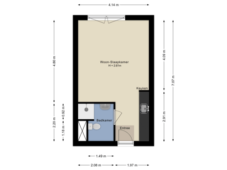 Als je deze studio binnenkomt, vind je aan de ene kant de keurige, open keuken, waar je elektrisch kunt koken (er is geen gasaansluiting). Aan de andere zijde heb je de badkamer met douche, toilet en wastafel. Hier kun je bovendien de wasmachine aansluiten. Aansluitend aan de open keuken heb je de woon/slaapkamer (samen circa 25 vierkante meter) met grote raampartijen die zorgen voor een prettige lichtinval.