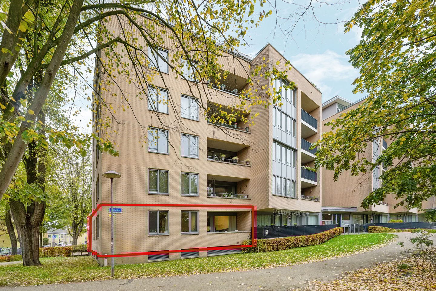 Je komt het verzorgde appartementencomplex binnen via de centrale entree met bellentableau en brievenbussen. Het appartement bevindt zich direct op de begane grond, waardoor traplopen verleden tijd is.
