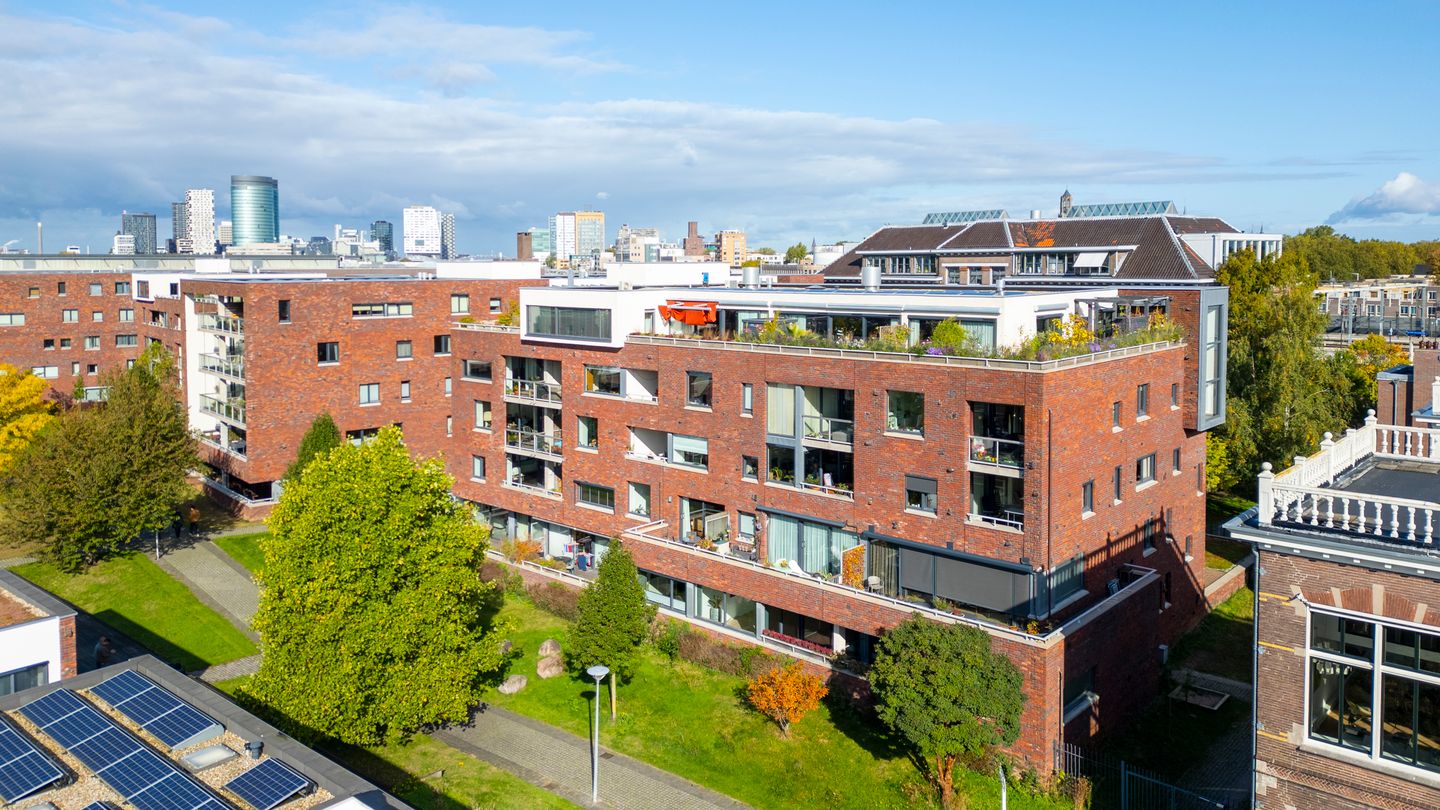Het appartement beschikt over een zonnig balkon, waar je heerlijk kunt genieten van de middag- en avondzon. Vanaf hier heb je uitzicht op het groen van het park, wat zorgt voor een ontspannen en natuurlijk gevoel in huis. Daarnaast is er een gemeenschappelijke binnentuin die uitsluitend toegankelijk is voor bewoners.