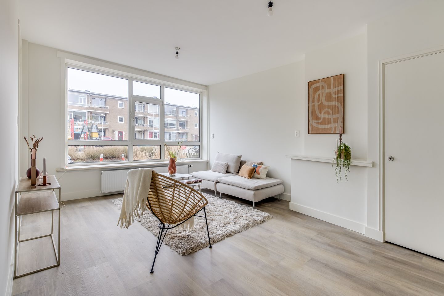 Entree, hal, meterkast, toilet met fontein, slaapkamer aan de voorzijde, royale lichte woonkamer met vaste kast, nette badkamer met van douche en vaste wastafel, keuken voorzien inductiekookplaat, afzuigkap, combi-oven, vaatwasser, koelkast en wasmachineaansluiting, slaapkamer aan de achterzijde. De gehele woning is voorzien van een laminaatvloer.