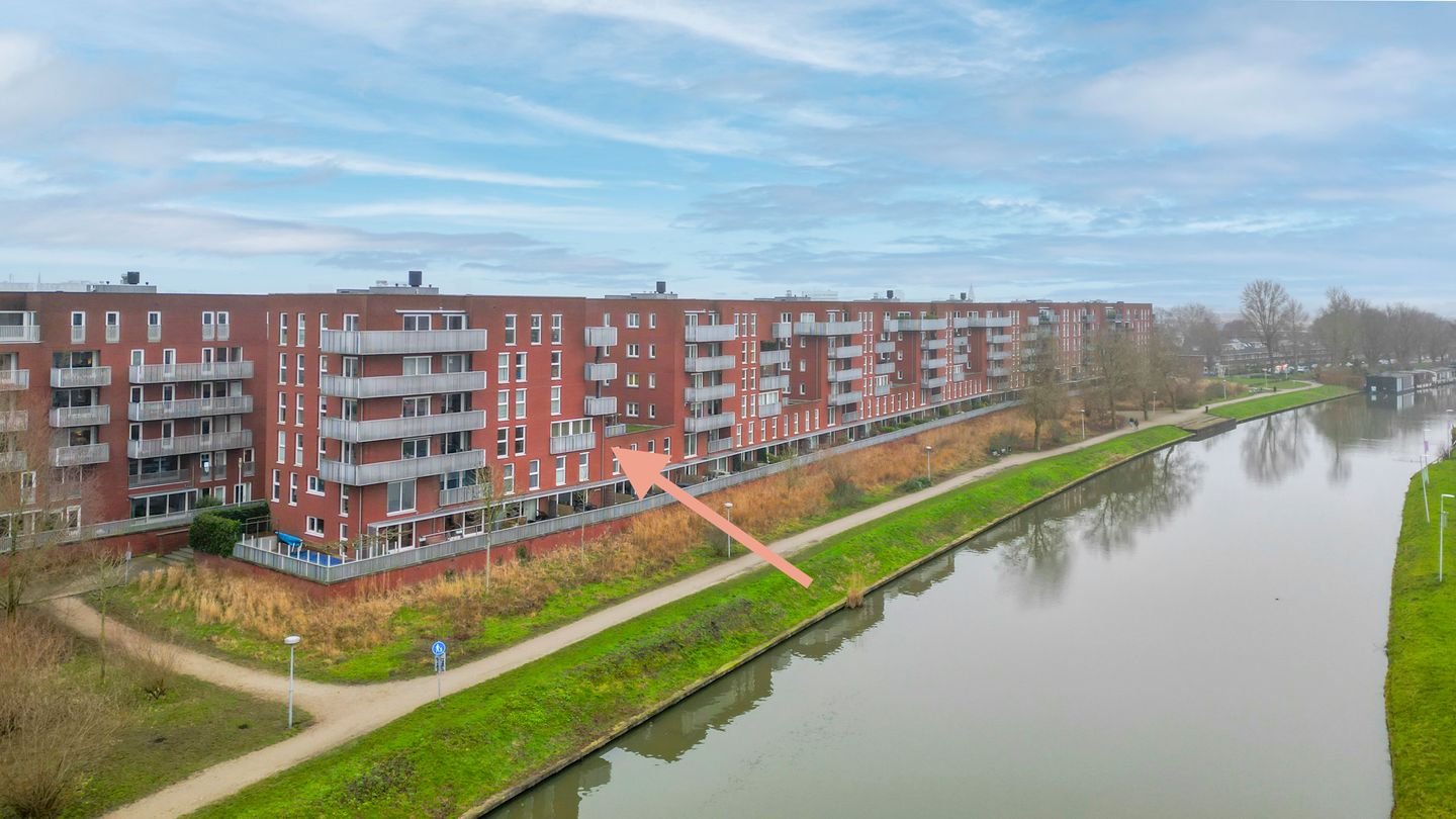 Het heerlijke terras met weids uitzicht bereik je via de woonkamer. Dit ruime terras van ca. 20 m² ligt op het zuidwesten. Hierdoor kun je in de middag en avond volop van de zon en het prachtige uitzicht over het Merwedekanaal genieten. Een perfecte plek om te ontspannen of gezellig te borrelen met vrienden.