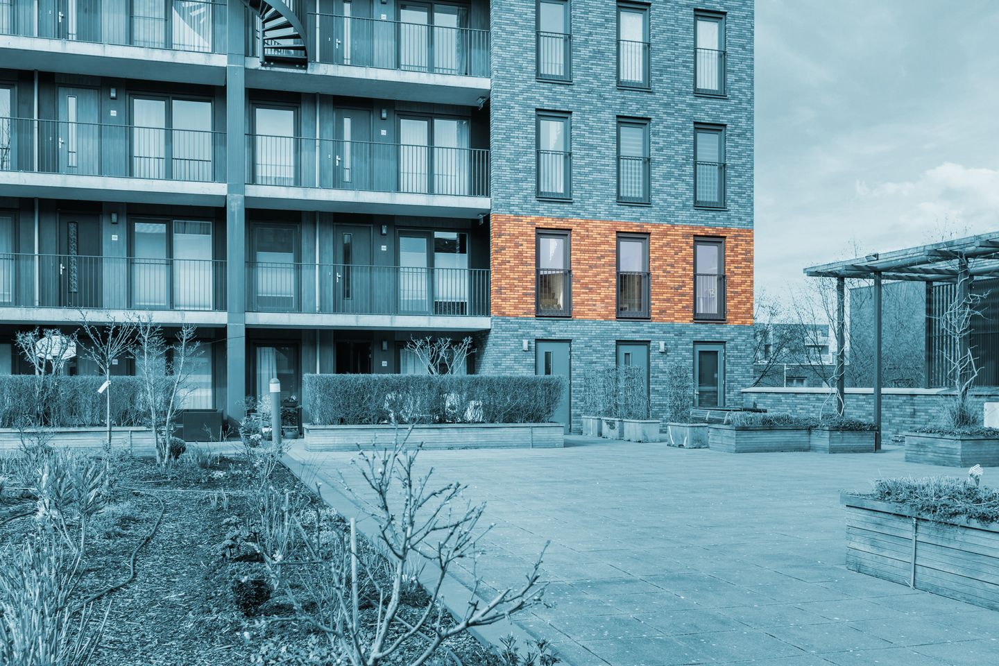 De woonkamer bevindt zich aan de achterzijde van de woning. Dankzij de ligging op de hoek van het complex en de grote raampartijen komt hier veel natuurlijk licht binnen, wat zorgt voor een open en aangename woonbeleving. De ramen kunnen volledig worden geopend waardoor binnen en buiten prettig met elkaar in verbinding staan.