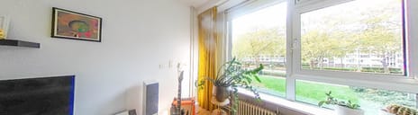 De woonkamer is ruim en licht, met grote ramen die zorgen voor veel natuurlijke lichtinval. Er is voldoende plek voor een grote eettafel en een comfortabele zithoek. Via de openslaande deur stap je het balkon op. Het balkon ligt op het zonnige zuidwesten en biedt een mooi uitzicht over de wijk.