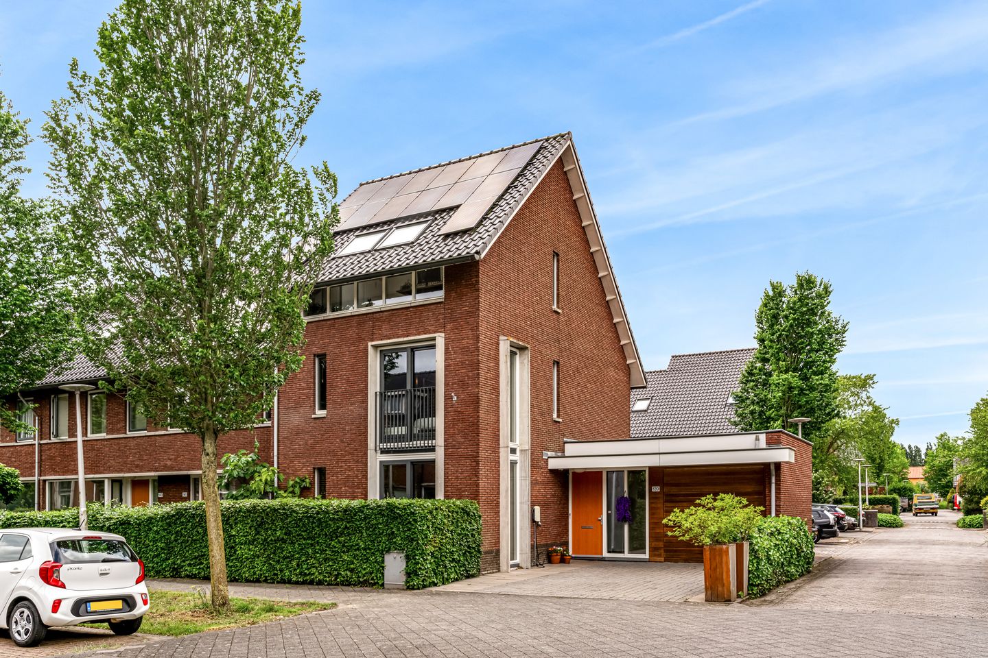 Naast de inpandige garage, voorzien van een elektrische deur, kun je nog twee auto’s kwijt op de eigen oprit.