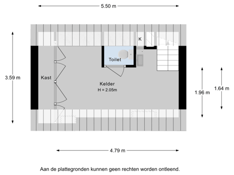 Onder het pand bevindt zich nog een kelder van circa 13m². Deze ruimte leent zich uitstekend als opslag, wijnkelder of hobbyruimte. Extra praktisch is dat de kelder beschikt over een wateraansluiting en een toilet. Handig wanneer je de begane grond als kantoor zou inrichten – dan heb je hier je eigen voorzieningen.