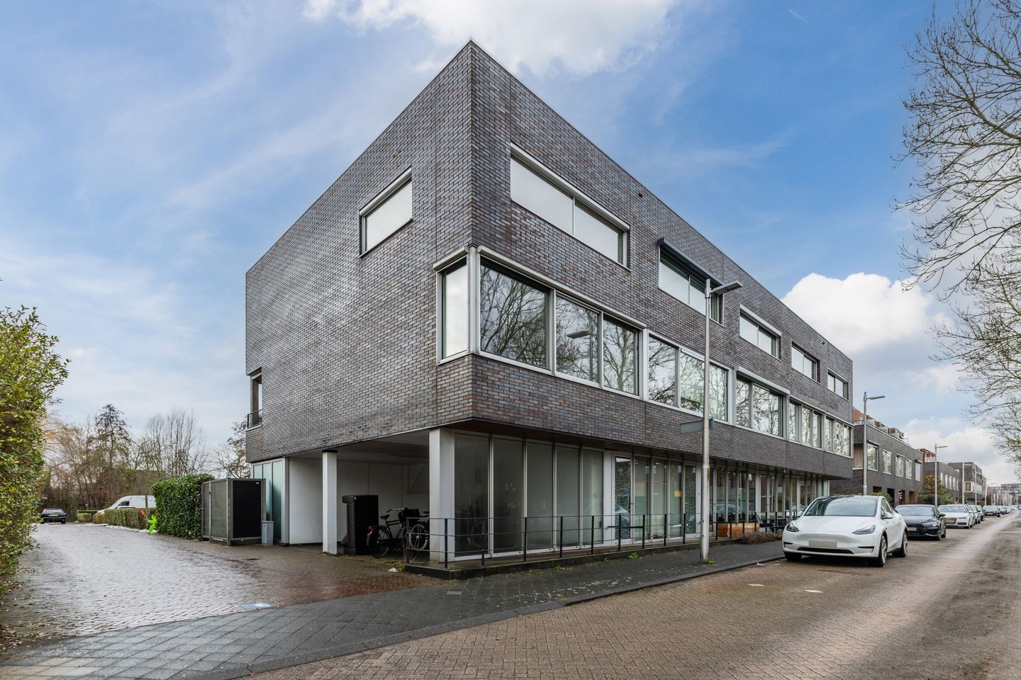 Playfully designed corner house with covered parking in the greenery of Langerak