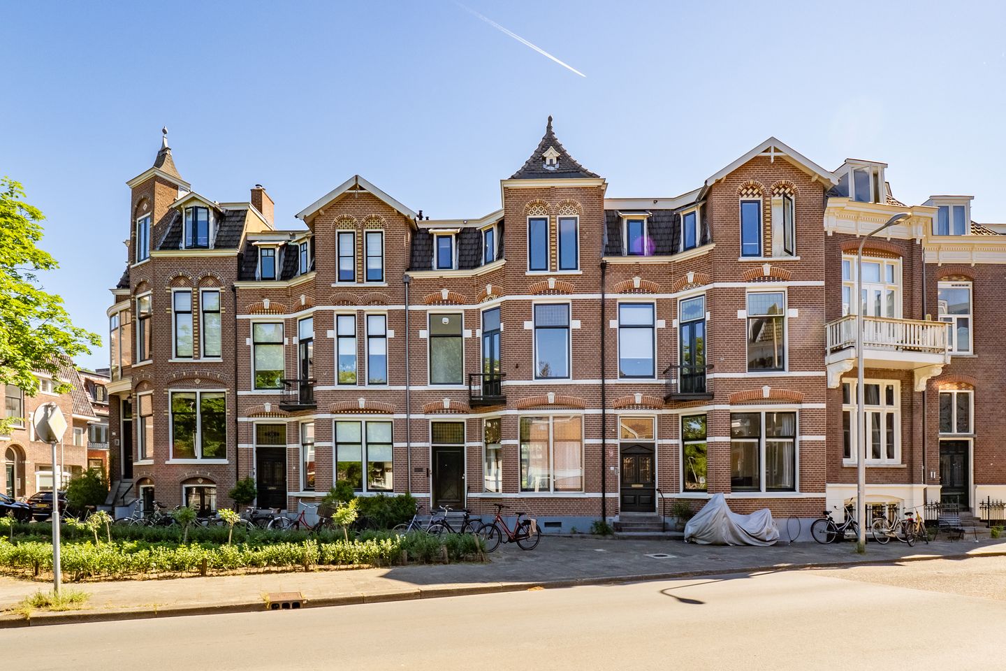 Neem eens de moeite om vanaf het tegenovergelegen plantsoen naar de fraaie gevels te kijken. Wat werd er toen toch mooi gebouwd.