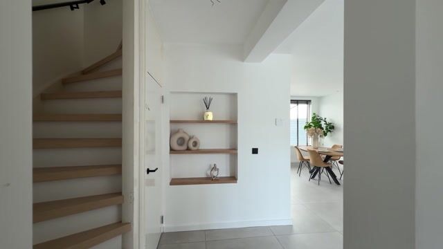 Je stapt de woning binnen in een ruime hal met voldoende plek voor de garderobe en ruimte om bijvoorbeeld een kinderwagen neer te zetten. Direct links bevindt zich het toilet. Aan de rechterzijde betreed je de royale leefruimte. De woonkamer ligt aan de voorzijde en biedt alle ruimte voor een comfortabele en gezellige zithoek.