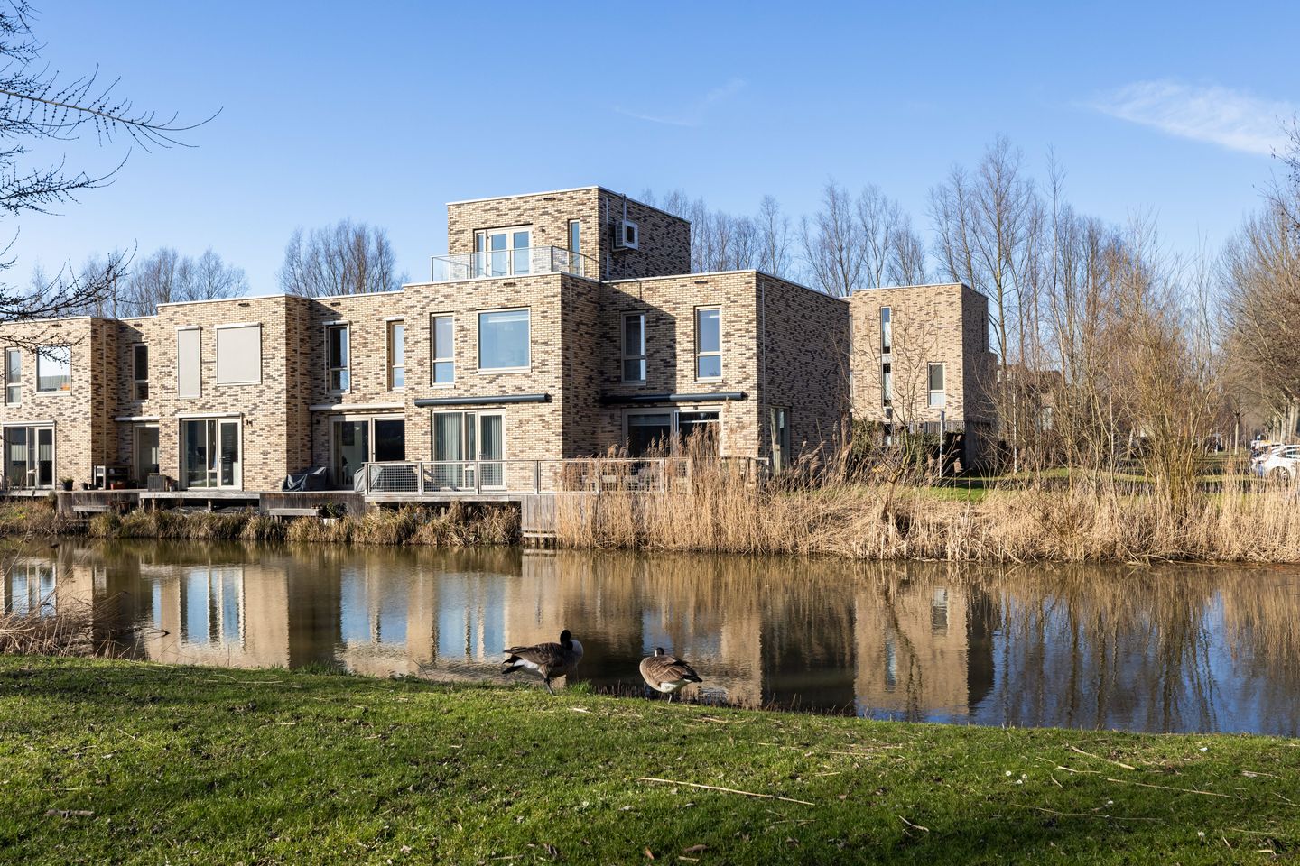 De woningen liggen op een schiereiland en kenmerken zich door royale puien, terrassen boven het water en fraai met hout beklede gevels. Hagen en bomen op het binnenterrein zorgen voor een prettige, groene overgang tussen privé en openbaar gebied.