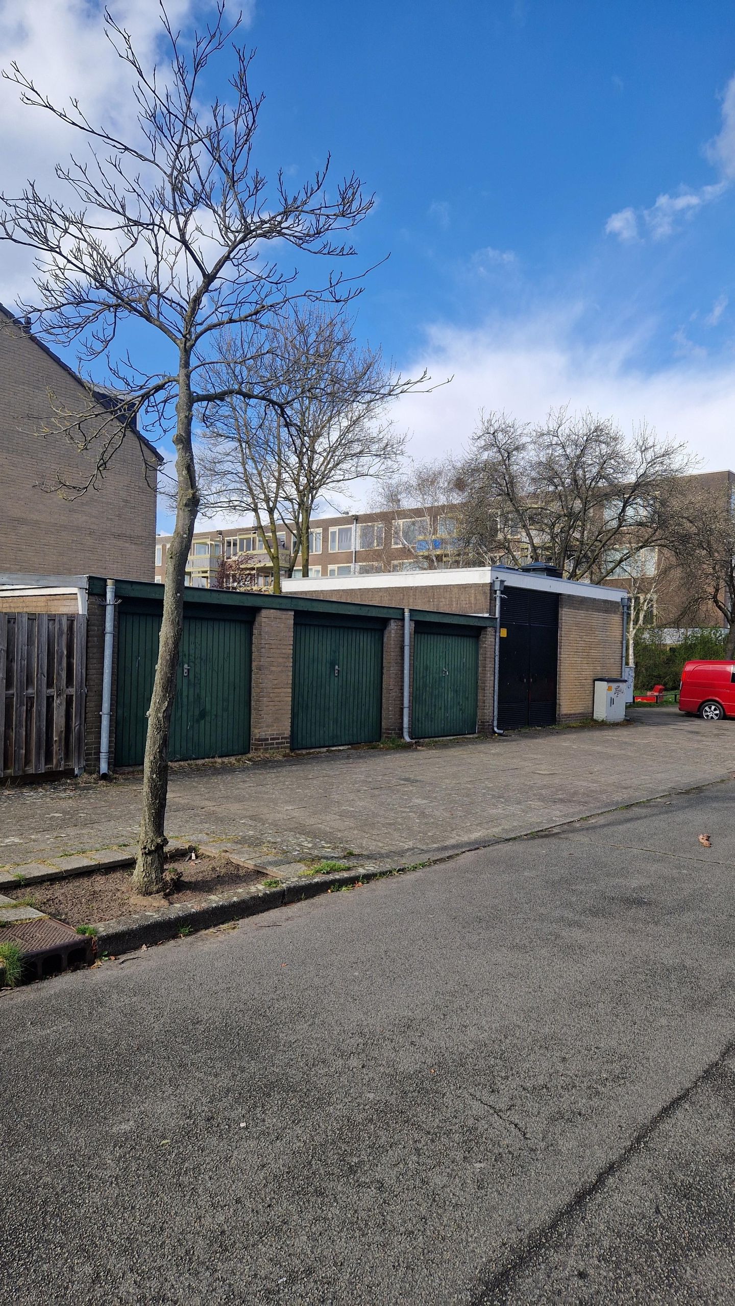 Deze garagebox ligt aan de Bombaydreef en heeft een eigen huisnummer.