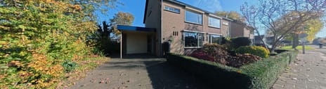 De voortuin biedt een oprit met parkeergelegenheid op eigen terrein. Nog een pluspunt is de ‘halve’ carport met inbouwspots waardoor je bij de voordeur altijd droog staat.