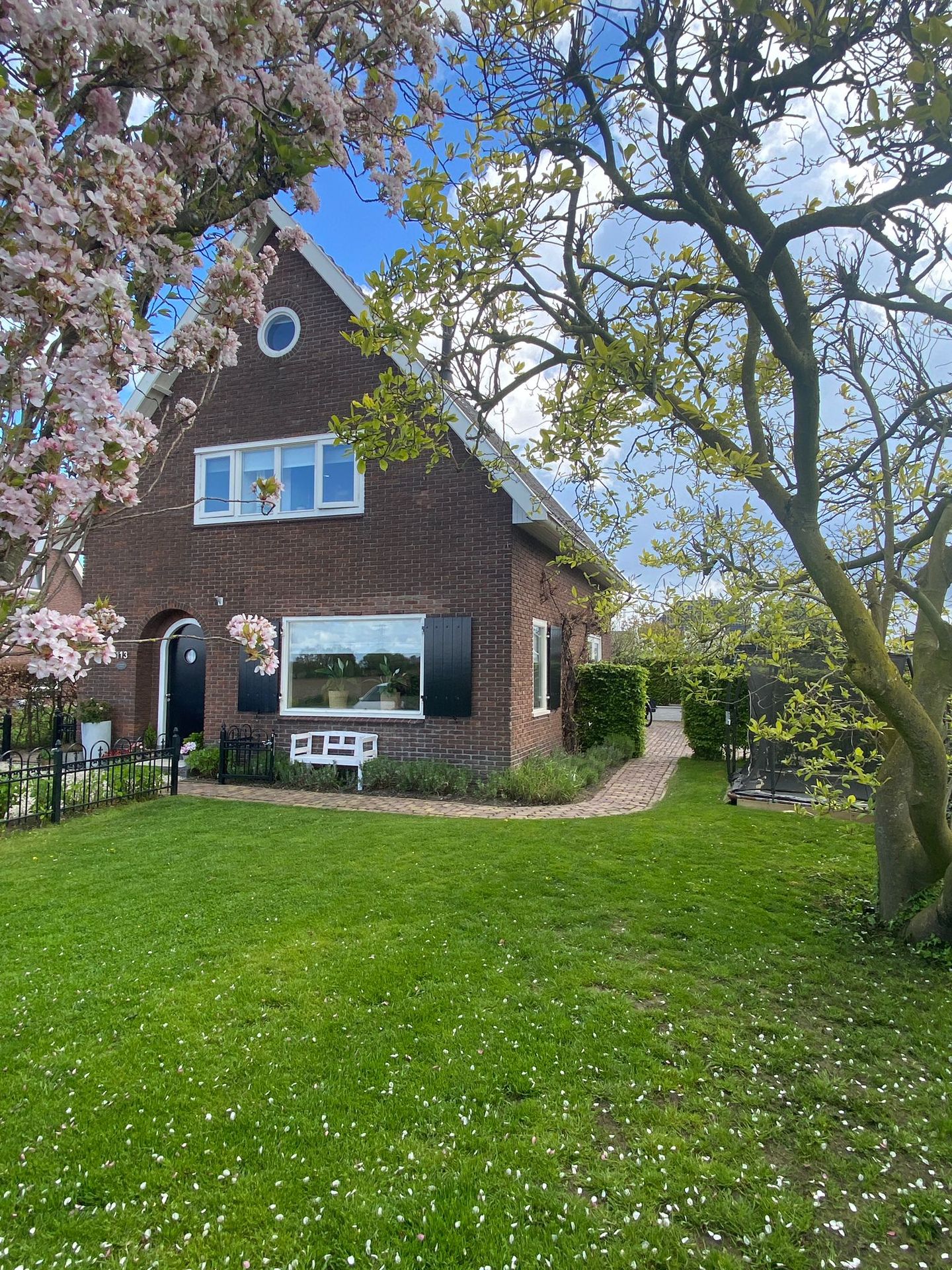 Een van de grote pluspunten van deze woning is de prachtige ligging. Aan de voorzijde kijk je vrij uit over de landerijen – een uitzicht dat nooit verveelt. Rondom het huis ligt een verzorgde tuin met volop zon en privacy. De achter- en zijtuin bieden verschillende fijne zitplekken, zodat je op elk moment van de dag kunt kiezen tussen zon of schaduw.