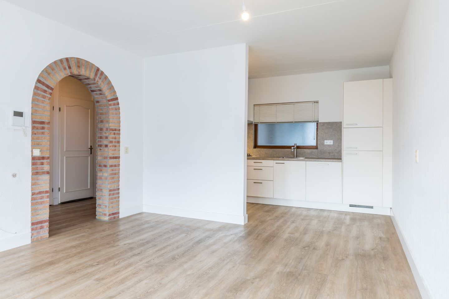 De ruime entree biedt toegang tot alle vertrekken. De lichte leefruimte van ca. 31 m² bestaat uit de woonkamer en de open keuken. Vanuit de woonkamer is het balkon van ca. 6 m² te bereiken. De inbouwkeuken in hoekopstelling biedt voldoende werk- en opbergruimte en is uitgerust met een koelkast, 4-pits gaskookplaat, afzuigkap, gootsteen, vaatwasser en vriezer.