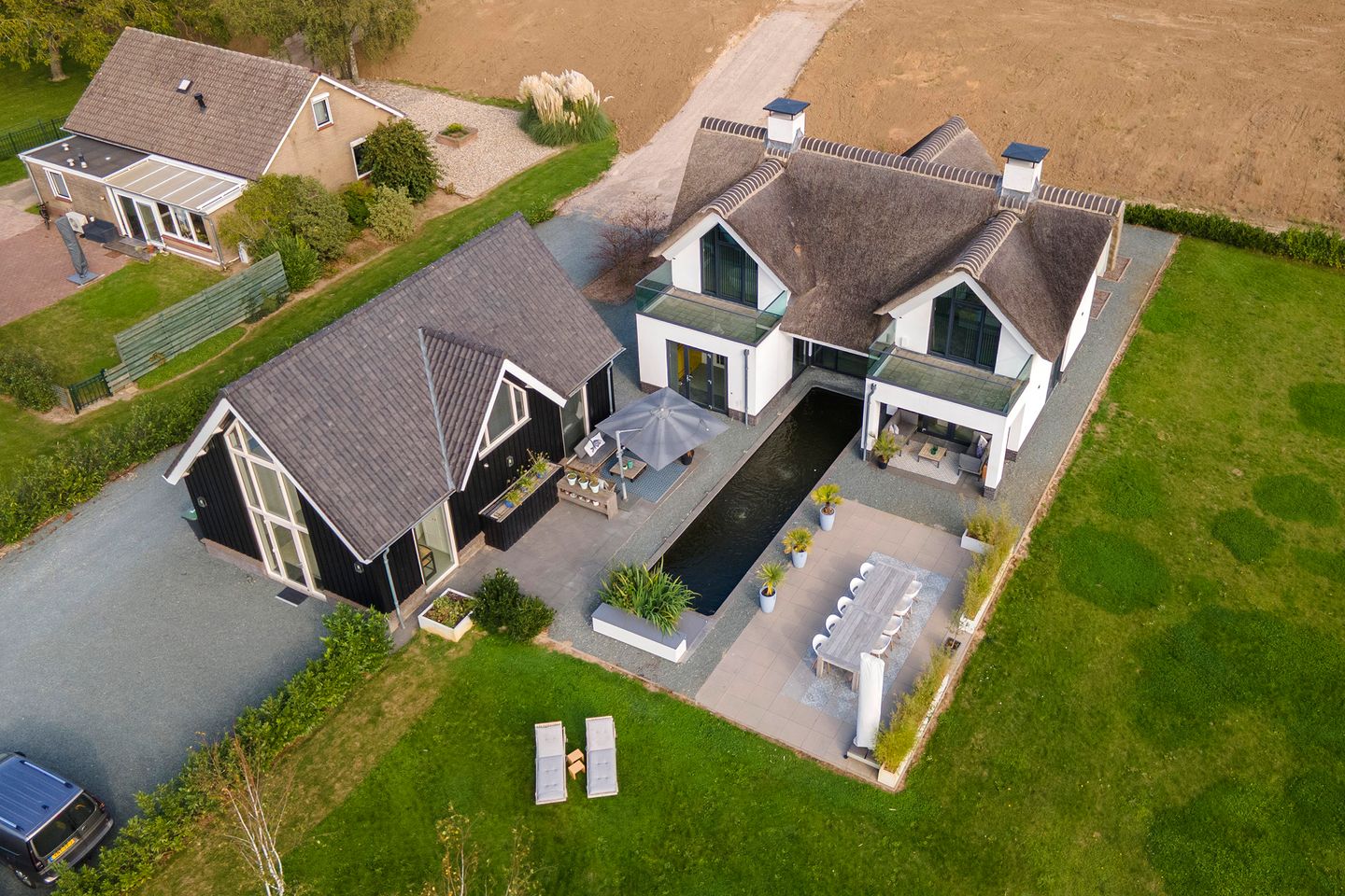 Deze modern rietgedekte villa ligt op een royaal perceel van ruim 3.000 m² met een sfeervolle oprijlaan, een stijlvol bijgebouw en een fraai aangelegde tuin met een grote vijver die desgewenst kan worden omgevormd tot zwembad of natuurlijke zwemvijver. U woont hier landelijk, maar met de elegantie en afwerking van een modern ontwerp. Elk seizoen biedt een nieuw uitzicht – en toch voelt het altijd als thuiskomen. Een unieke kans voor wie op zoek is naar rust, ruimte en pure klasse.