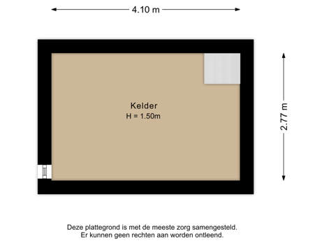 Kelder, 11 m², met een stahoogte van 1.5 meter, via de woonkamer te bereiken.