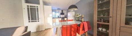 De moderne open keuken is in 2021 vernieuwd en strak uitgevoerd. Deze is voorzien van diverse inbouwapparatuur, waaronder een inductiekookplaat, combi-oven, koel-/ vriescombinatie en vaatwasser. De keuken sluit mooi aan op de woonkamer en biedt volop ruimte voor een gezellige eethoek.