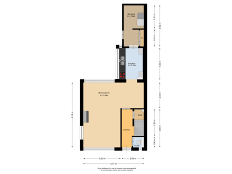 - 76 m² (13,10 meter diep en 9,00 meter breed)