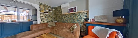 Op deze woonlaag bevindt zich de lichte en sfeervolle woonkamer. Dankzij de grote raampartijen en de prettige indeling voelt deze ruimte direct uitnodigend aan. Daarnaast is deze ruimte voorzien van een airco (Daikin Siesta 2021) en een gezellige schouw. Tussen de woonkamer en keuken bevindt zich een charmante toog, wat zorgt voor een speelse verbinding tussen beide ruimtes.