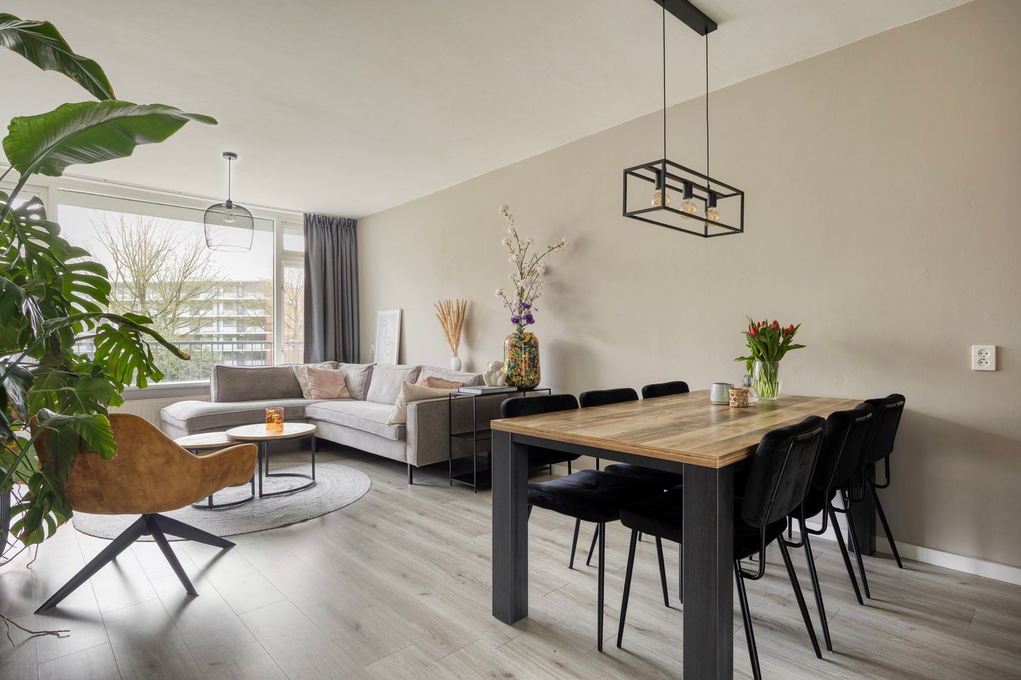 De woonkamer is heerlijk licht dankzij het brede raam en de gunstige ligging op het zuiden. De zon schuift hier al vroeg naar binnen en zorgt voor een warme, uitnodigende sfeer. Met circa 26 m² is er volop plek voor een comfortabele zithoek én een royale eettafel. Een plek waar je vrienden ontvangt, natafelt of simpelweg geniet van een rustige avond op de bank.
