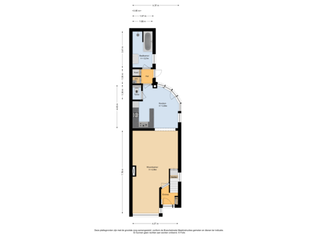- 102 m² (18,50 meter diep en 5,50 meter breed)