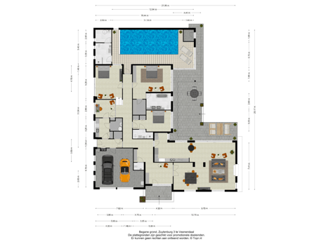 • Ruim terras van 65 m², deels overdekt aan de zwembadzijde, gericht op zuid en west