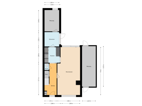 - 100 m² (12,07 meter diep en 8,29 meter breed)