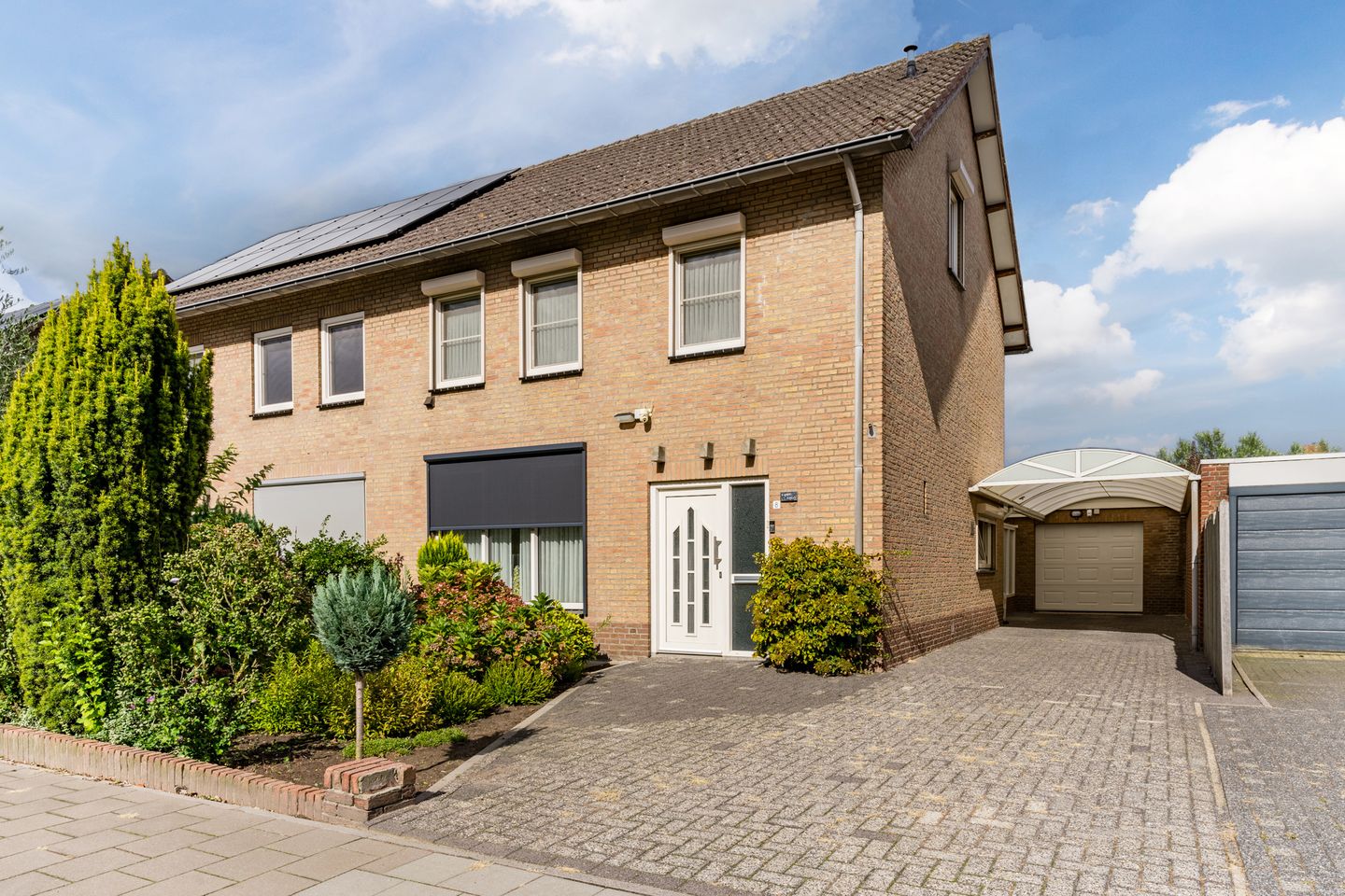 De oprit biedt ruimte aan meerdere auto’s te parkeren op eigen terrein, waaronder twee auto's onder de carport met toegang tot de garage. Via het voetpad bereikt u de voordeur van de woning. Ook heeft u via de carport toegang tot de achtertuin om zo via uw eigen achterom de woning te bereiken.