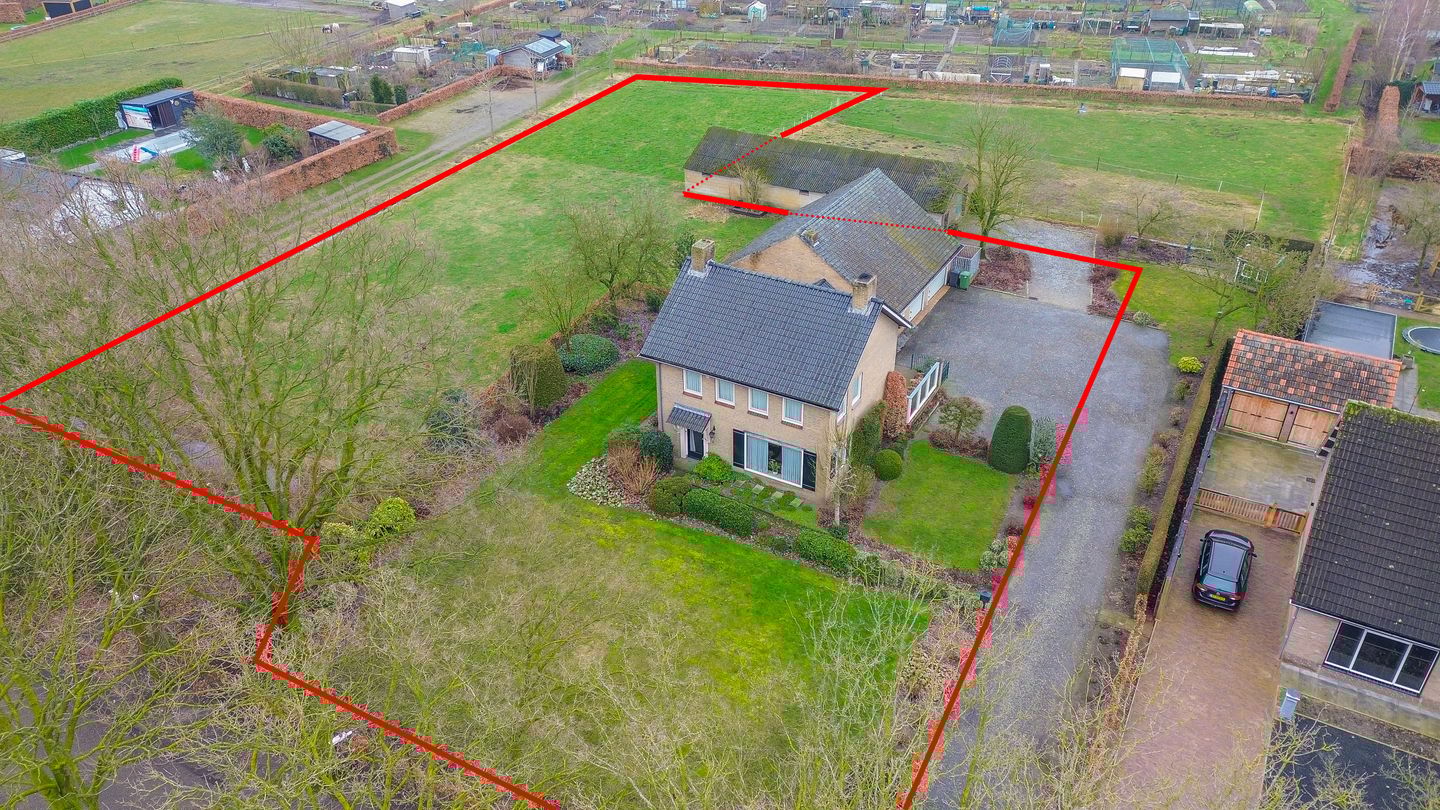 De woning staat op een royaal perceel van circa 3.063 m² (exacte oppervlakte moet blijken na inmeting door het Kadaster), waardoor u volop ruimte heeft rondom de woning. Er is altijd wel een plekje in de zon of schaduw te vinden. Naast de woning bevindt zich een lange oprijlaan met toegang tot het bouwperceel wat los van de woning wordt verkocht. U beschikt hier over ruime parkeergelegenheid op eigen terrein. De achtertuin is rondom gelegen en biedt vele gebruiksmogelijkheden, zoals het houden van paarden of hobbydieren.