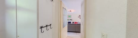 Bij binnenkomst wordt u verwelkomd in een lichte en nette hal die direct een verzorgde indruk maakt. De hal is afgewerkt met spachtelputz wanden en plafond en voorzien van een Laperto tegelvloer die doorloopt in de woonkamer. Hier vindt u de meterkast (10 groepen), de trapopgang naar de eerste verdieping en toegang tot de toiletruimte. Deze toiletruimte is volledig betegeld en uitgerust met een wandcloset en fontein, waarbij dezelfde vloer is doorgelegd.