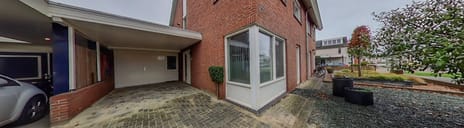 Bij aankomst bij de woning is er voldoende ruimte om drie auto's op eigen terrein te parkeren, waarvan 1 auto onder de carport. Via het voetpad in de voortuin bereikt u de overdekte entree.
