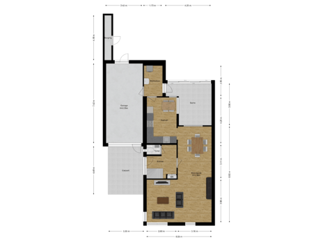 - 147 m² (14,73 meter diep en 9,97 meter breed)