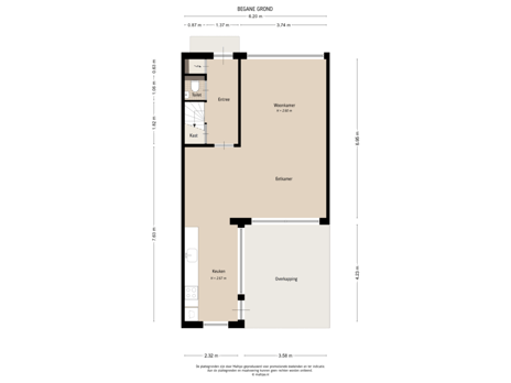 - 112 m² (18,00 meter diep en 6,20 meter breed)