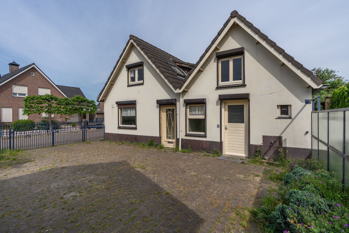 De entree bevindt zich aan de kopse kant van de woning. Vanaf de straat is de entree bereikbaar via het tuinhek en de eigen oprit. De eerste deur die je tegenkomt is de reguliere entree van de woning. Naast deze officiële entree kun je de woning ook betreden via de achterdeur, de tweede deur. Ook wel de spreekwoordelijke achterom en in deze regio is dit heel gebruikelijk!