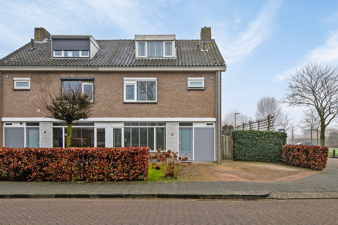 Middels de keurig aangelegde voortuin en eigen oprit met voldoende parkeergelegenheid toegang tot de woning en middels een poort naar de achtertuin.