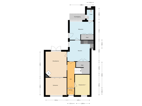 - 80 m² (16,00 meter diep en 5,00 meter breed)
