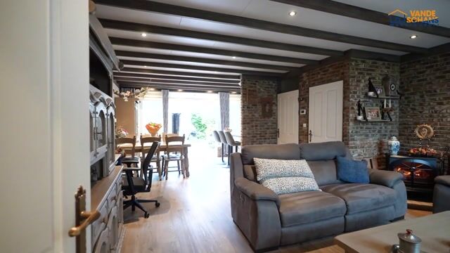 De sfeervolle woonkamer is voorzien van een moderne PVC-vloer met vloerverwarming, lambrisering, balkenplafond met dimbare inbouwspots, brede vensterbank en een praktische trapkast. Aan de voorzijde van de woonkamer zijn twee raamkozijnen in draai/kiepsysteem met insectenhorren en aan de achterzijde zorgen de royale aluminium schuifpuien (4-delig, en voorzien van dauerluftung, roedeverdeling en schuifhorren) voor een zee aan licht en een naadloze verbinding met de zonnige tuin. De schuifpui is op meerdere manieren te openen waardoor je een flexibele verbinding met de tuin kan creëren.