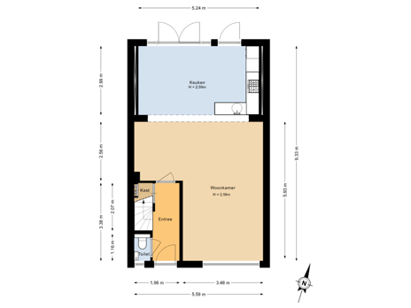 De woning is zorgvuldig professioneel ingemeten. De Meetinstructie is gebaseerd op de NEN2580. De Meetinstructie is bedoeld om een meer eenduidige manier van meten toe te passen voor het geven van een indicatie van de gebruiksoppervlakte. De Meetinstructie sluit verschillen in meetuitkomsten niet volledig uit, door bijvoorbeeld interpretatieverschillen, afrondingen of beperkingen bij het uitvoeren van de meting.