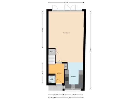 - 60 m² (10,00 meter diep en 6,00 meter breed)