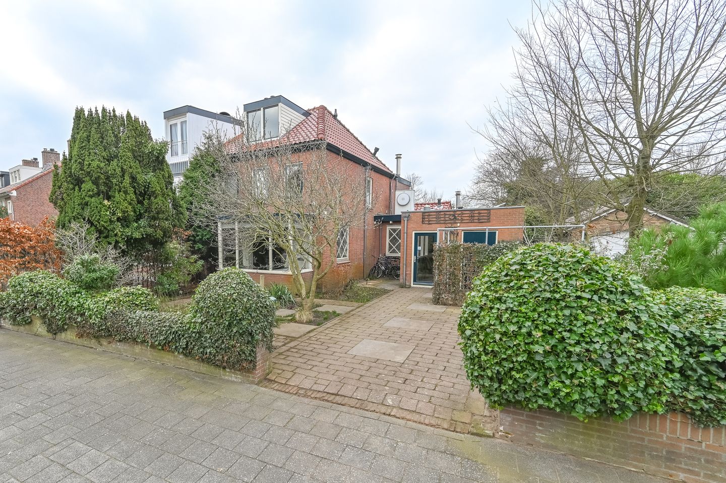 De villa heeft een diepe voortuin met parkeergelegenheid op eigen terrein en een 2e zij-entree naar het gastenverblijf. De heerlijk royale tuin heeft een ruim zonneterras waar je fijn in de zon kan BBQ-en en bij de open haard kan zitten uitkijkend op het groene gazon. Achter in de tuin is een tweede terras rondom de vijver en staat een houten vrijstaande schuur.