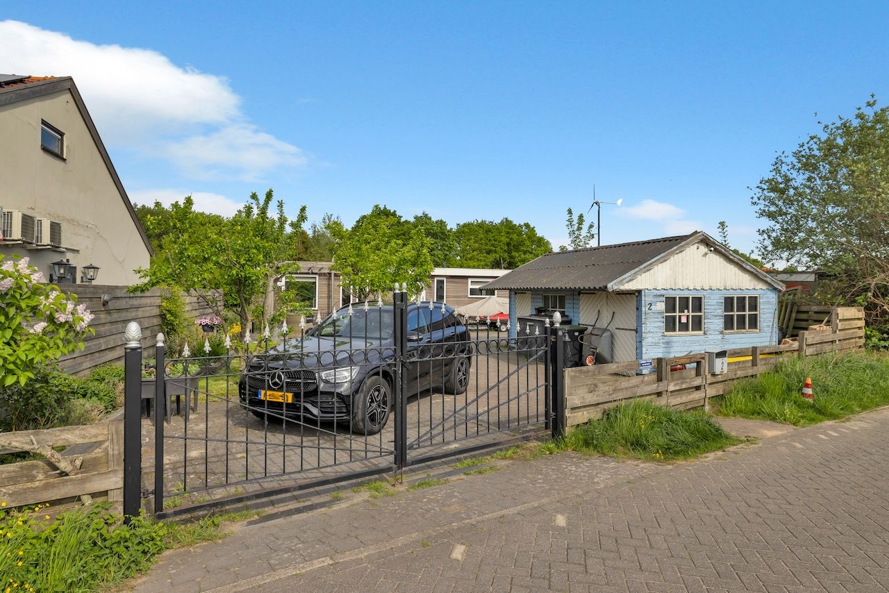 Bij de woonark hoort een groot omheind erf van ca. 400 m2 waarop 2-3 parkeerplaatsen en een groot tuinhuis van 4.00 x 6.00 m (een schuur/tuinhuis van 40 m2 is toegestaan), een royaal terras met pergola en een grasveld met trampoline en bomen. Aan de waterzijde is een zwemsteiger met aanlegplaats voor een plezierboot. Vanaf de ligplaats is open vaarwater bereikbaar zowel naar Haarlem als naar het Noordzeekanaal. Scholen en winkels zijn allemaal op korte fietsafstand bereikbaar!