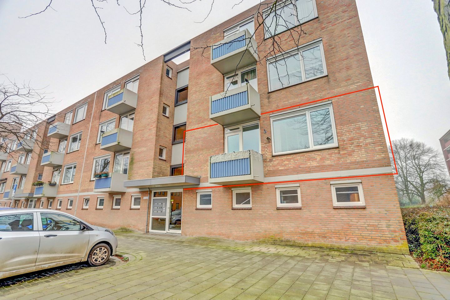 Centrale entree met de postkasten, het bellentableau, het trappenhuis naar de verdiepingen en de toegang tot de eigen berging (ca. 5 m2).