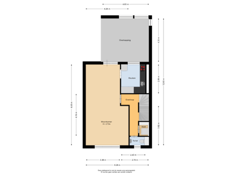 - 20 m² (4,33 meter diep en 4,63 meter breed)