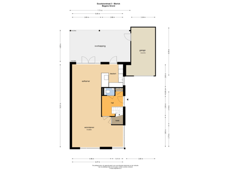 Entree, de hal voorzien van de meterkast, het geheel betegelde, luxe toilet met een fonteintje, de trapopgang naar de 1e verdieping en de doorgang naar de woonkamer. De grote woonkamer (ca. 57 m2) is voorzien van een praktische trapkast, aangename airconditioning (2023), openslaande deuren naar de tuin en een luxe keukenopstelling met een inductiekookplaat, een afzuigkap, een combi-oven met magnetronfunctie, een vaatwasser, koelkast en een spoelbak. In de keuken is tevens een deur naar de tuin. De gehele begane grond is voorzien van een moderne tegelvloer met aangename vloerverwarming.