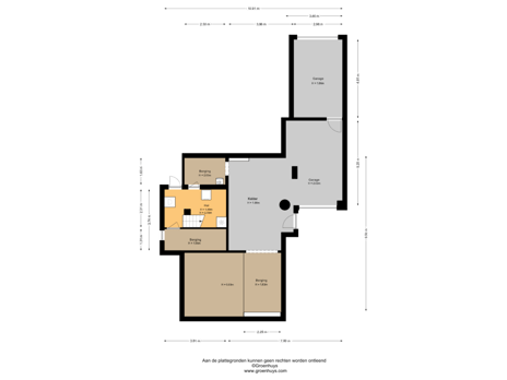 Het ruime souterrain beschikt over een wasruimte met aansluitingen voor wasmachine en droger (ca. 14m2), een provisiekelder (ca. 5m2) een opslagruimte (ca.21m2), stook-/opslagruimte (ca. 19m2). Daarnaast is hier de inpandige garage bereikbaar met toegang naar de oprit en de 2e garage met toegang tot de achtertuin.