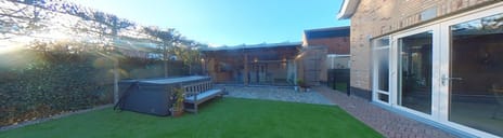 De op het zuiden gelegen achtertuin is voorzien van een natuurstenen terras, een stenen berging met aparte groepenkast, een tuinkamer met glazen schuifwanden, ingebouwde bar met drankenkoelkast. Daikin airco (2025), TV en internetaansluiting. Kortom hier is het jaarrond heerlijk vertoeven!