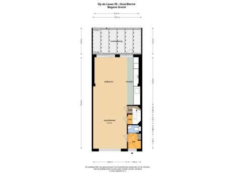 - 36 m² (5,61 meter diep en 6,50 meter breed)